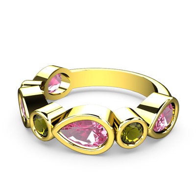 Pembe kuvars ve peridot 14 ayar altın yüzük