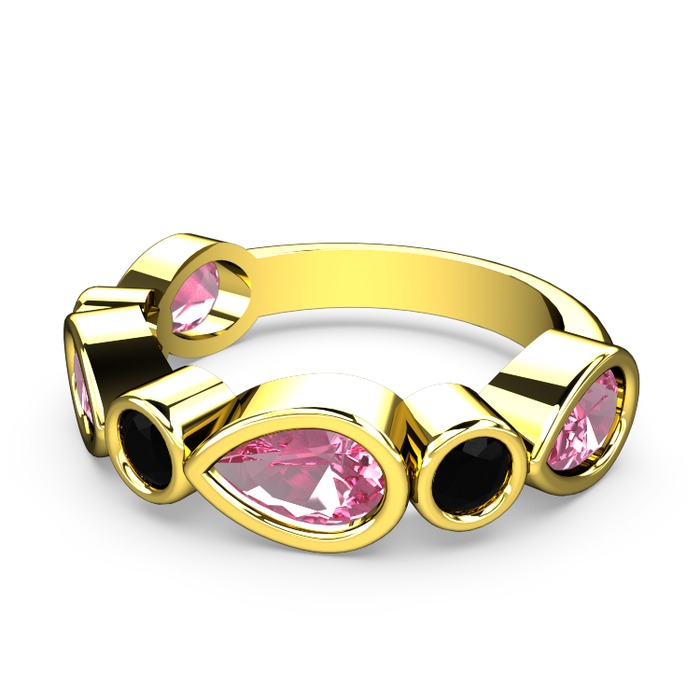 Pembe kuvars ve siyah zirkon 8 ayar altın yüzük