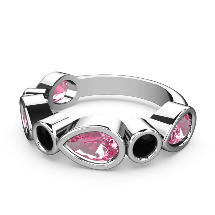 Pembe kuvars ve siyah zirkon 8 ayar beyaz altın yüzük