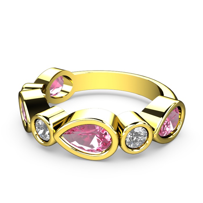 Pembe kuvars ve swarovski 18 ayar altın yüzük