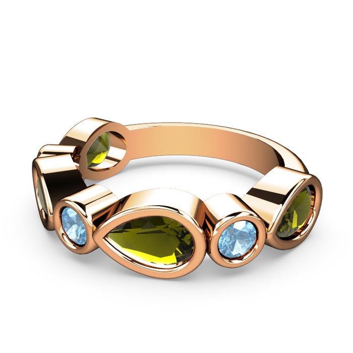 Peridot ve akuamarin 925 ayar rose altın kaplama gümüş yüzük
