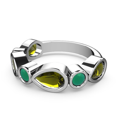 Peridot ve kök zümrüt 14 ayar beyaz altın yüzük