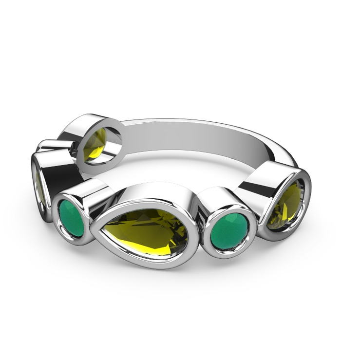 Peridot ve kök zümrüt 18 ayar beyaz altın yüzük
