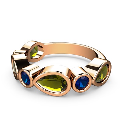 Peridot ve lab safir 18 ayar rose altın yüzük