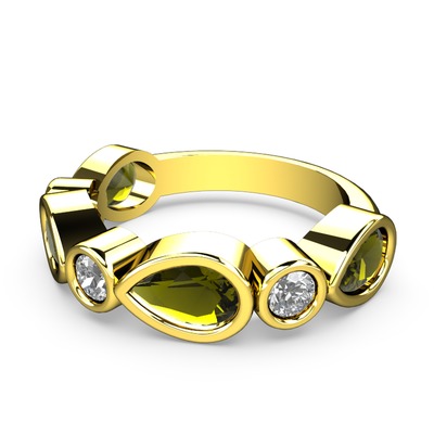 Peridot ve pırlanta 18 ayar altın yüzük (0.22 karat)
