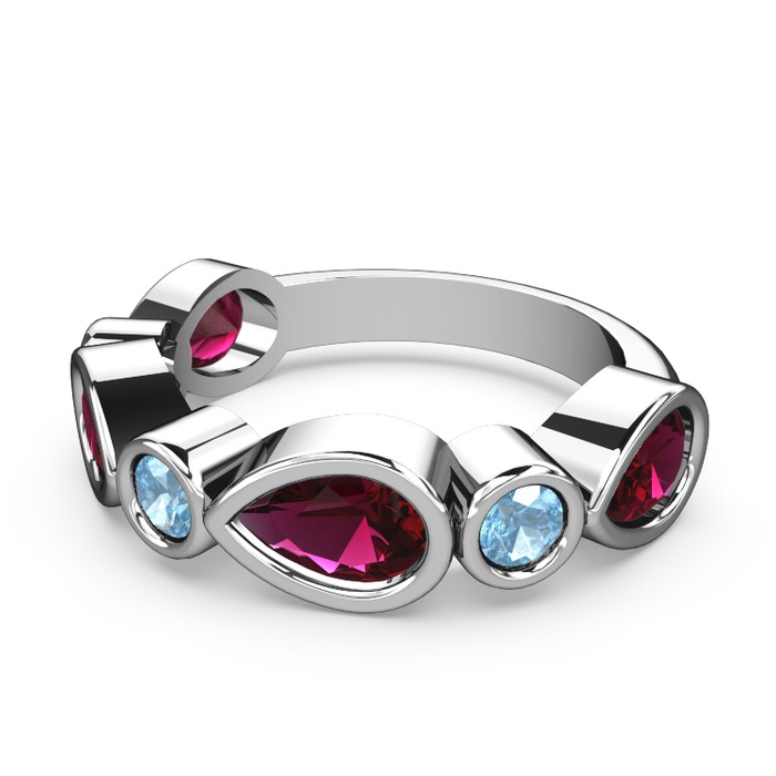 Rodolit garnet ve akuamarin 8 ayar beyaz altın yüzük