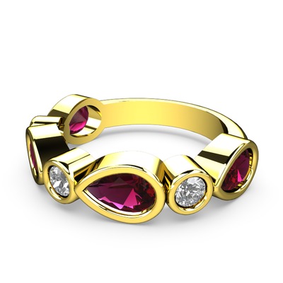 Rodolit garnet ve beyaz zirkon 14 ayar altın yüzük