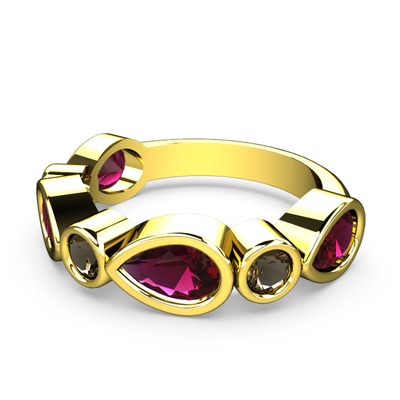 Rodolit garnet ve dumanlı kuvars 18 ayar altın yüzük