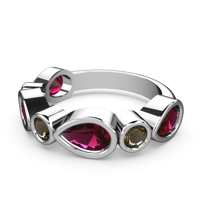 Rodolit garnet ve dumanlı kuvars 8 ayar beyaz altın yüzük