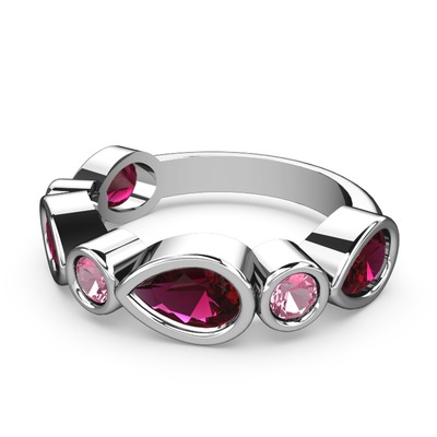 Rodolit garnet ve pembe kuvars 18 ayar beyaz altın yüzük