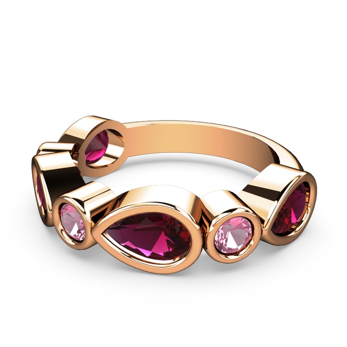 Rodolit garnet ve pembe kuvars 925 ayar rose altın kaplama gümüş yüzük