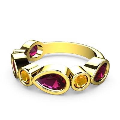 Rodolit garnet ve sitrin 14 ayar altın yüzük