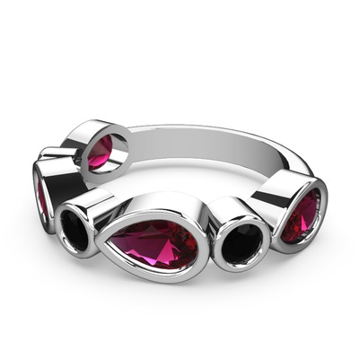 Rodolit garnet ve siyah zirkon 8 ayar beyaz altın yüzük