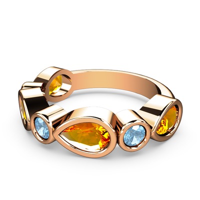 Sitrin ve akuamarin 18 ayar rose altın yüzük