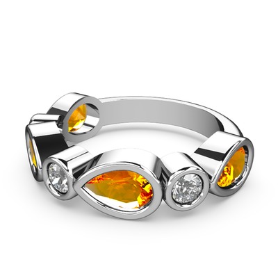 Sitrin ve beyaz zirkon 18 ayar beyaz altın yüzük
