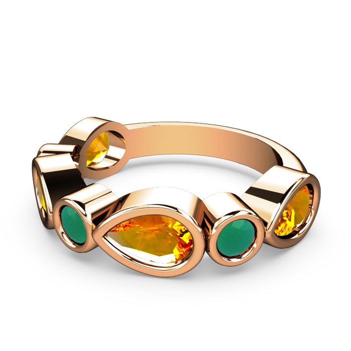 Sitrin ve kök zümrüt 8 ayar rose altın yüzük