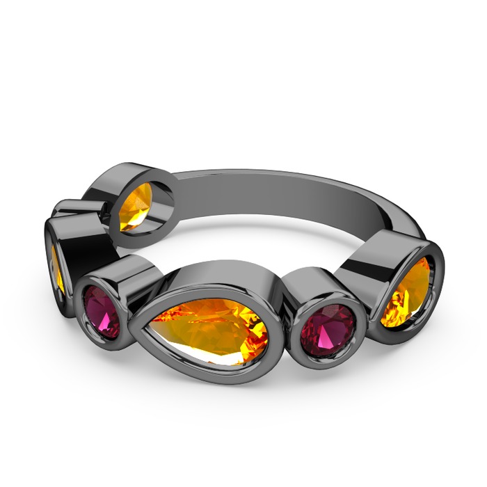 Sitrin ve rodolit garnet 925 ayar siyah rodyum kaplama gümüş yüzük