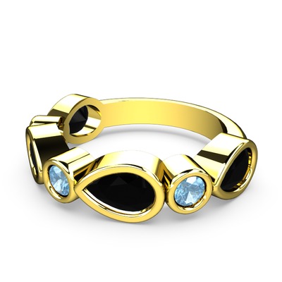 Siyah zirkon ve akuamarin 18 ayar altın yüzük