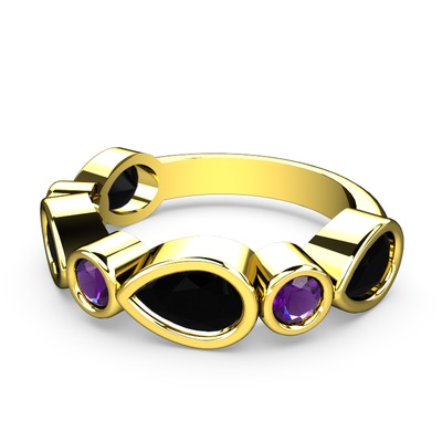 Siyah zirkon ve ametist 18 ayar altın yüzük