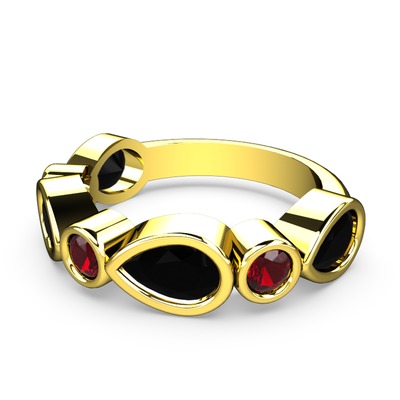 Siyah zirkon ve garnet 18 ayar altın yüzük