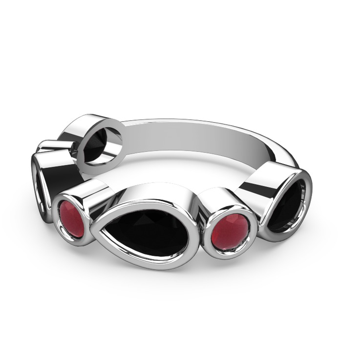 Siyah zirkon ve kök yakut 18 ayar beyaz altın yüzük