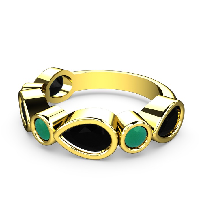 Siyah zirkon ve kök zümrüt 14 ayar altın yüzük