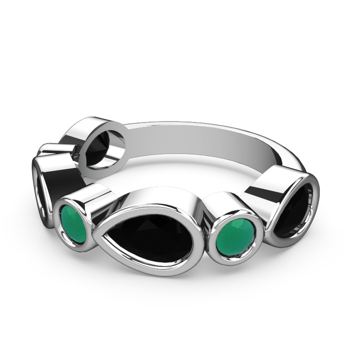 Siyah zirkon ve kök zümrüt 18 ayar beyaz altın yüzük