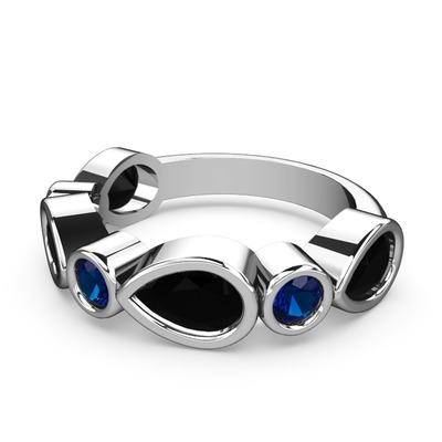 Siyah zirkon ve lab safir 14 ayar beyaz altın yüzük