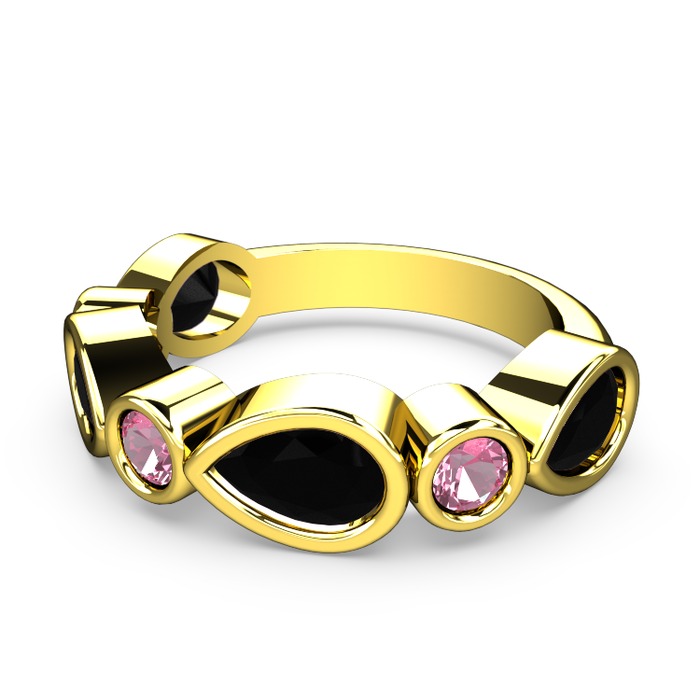 Siyah zirkon ve pembe kuvars 18 ayar altın yüzük