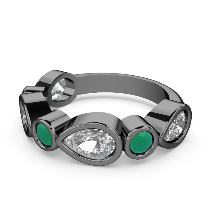 Swarovski ve kök zümrüt 925 ayar siyah rodyum kaplama gümüş yüzük
