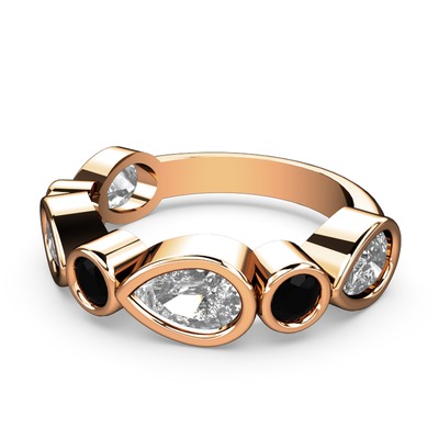 Swarovski ve siyah zirkon 14 ayar rose altın yüzük