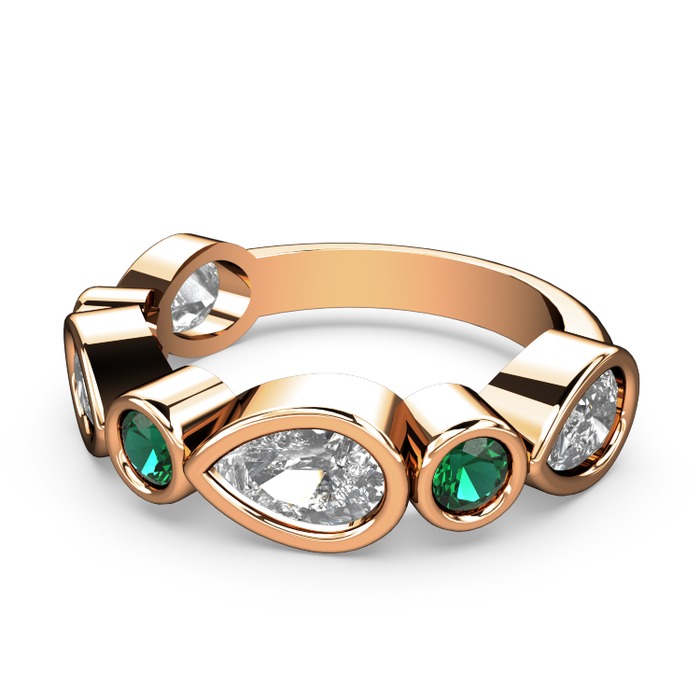 Swarovski ve yeşil kuvars 14 ayar rose altın yüzük