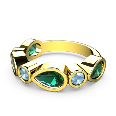 Yeşil kuvars ve akuamarin 8 ayar altın yüzük