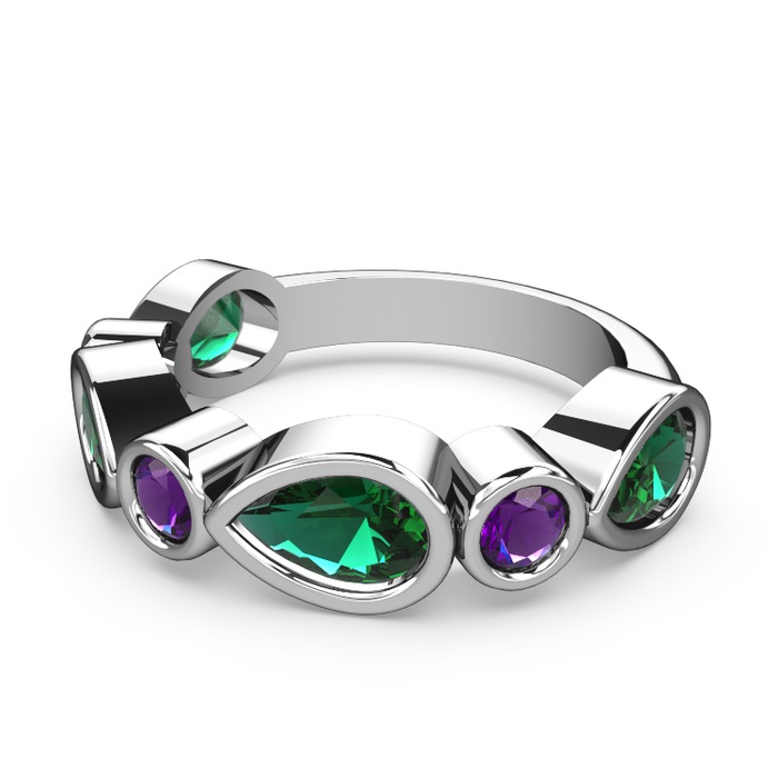 Yeşil kuvars ve ametist 8 ayar beyaz altın yüzük