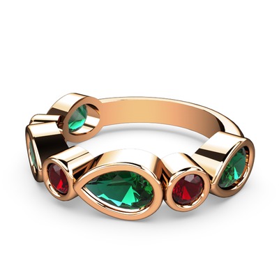 Yeşil kuvars ve garnet 14 ayar rose altın yüzük