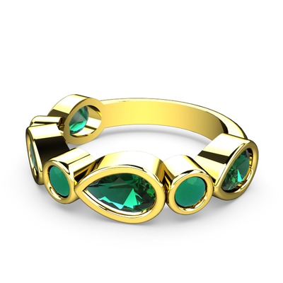 Yeşil kuvars ve kök zümrüt 18 ayar altın yüzük