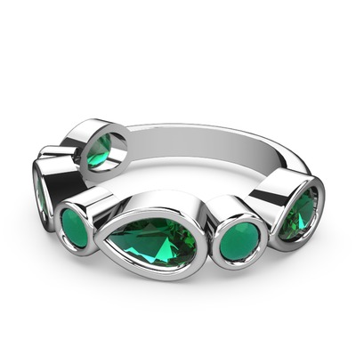 Yeşil kuvars ve kök zümrüt 8 ayar beyaz altın yüzük