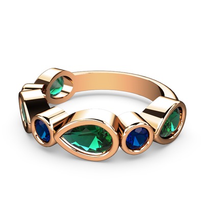 Yeşil kuvars ve lab safir 14 ayar rose altın yüzük