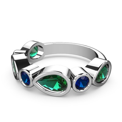 Yeşil kuvars ve lab safir 18 ayar beyaz altın yüzük