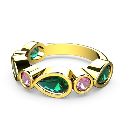 Yeşil kuvars ve pembe kuvars 925 ayar altın kaplama gümüş yüzük