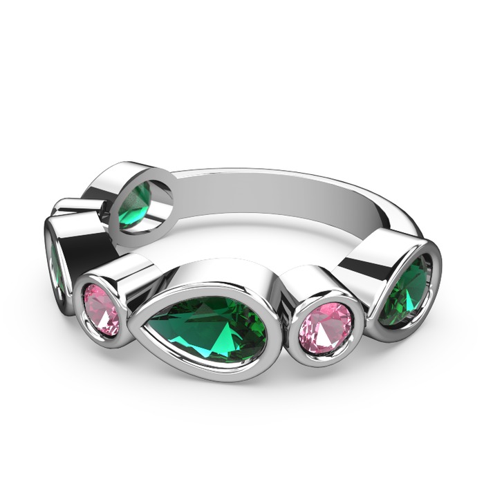 Yeşil kuvars ve pembe kuvars 925 ayar gümüş yüzük