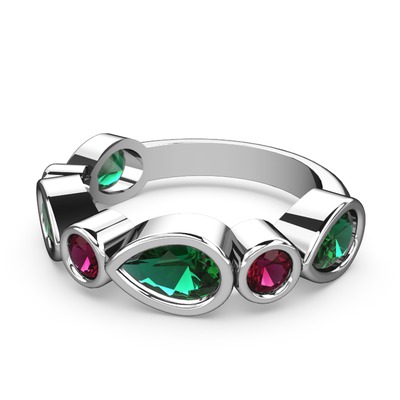 Yeşil kuvars ve rodolit garnet 14 ayar beyaz altın yüzük