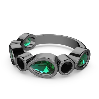 Yeşil kuvars ve siyah zirkon 925 ayar siyah rodyum kaplama gümüş yüzük