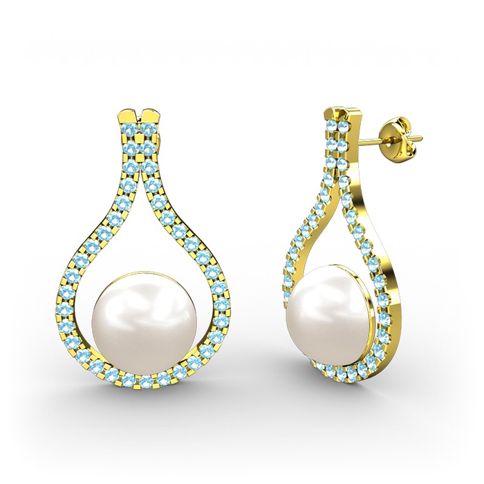 Inci ve akuamarin 925 ayar altın kaplama gümüş küpe