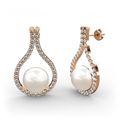 Inci ve pırlanta 925 ayar rose altın kaplama gümüş küpe (1.11 karat)