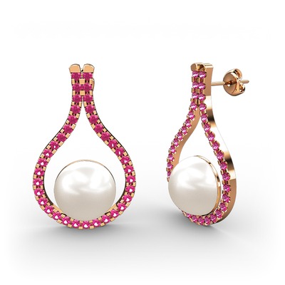 Inci ve rodolit garnet 18 ayar rose altın küpe