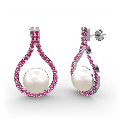 Inci ve rodolit garnet 8 ayar beyaz altın küpe
