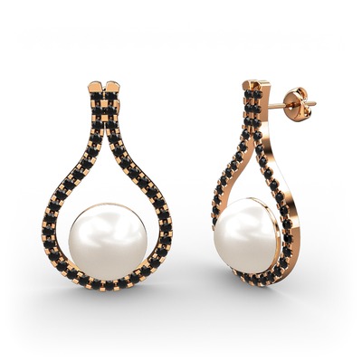 Inci ve siyah zirkon 14 ayar rose altın küpe