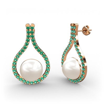 Inci ve yeşil kuvars 8 ayar rose altın küpe