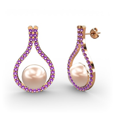 Pembe inci ve ametist 8 ayar rose altın küpe